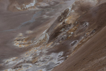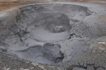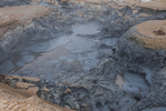 Kokende modderpoel in solfatarenveld. De (blauw)grijze kleur ontstaat door uiterst fijne deeltjes pyriet (ijzersulfide) en klei, opgelost in het door opstijgende gassen verwarmde grondwater...