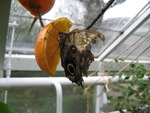 Gehavende vlinder die zich tegoed doet aan een schijfje sinaasappel Genomen met een Canon PowerShot A710 IS
