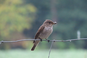 Grauwe vliegenvanger, gefotografeerd op vakantie in een natuurhuisje, waar deze vogel poseerde met zijn buit.